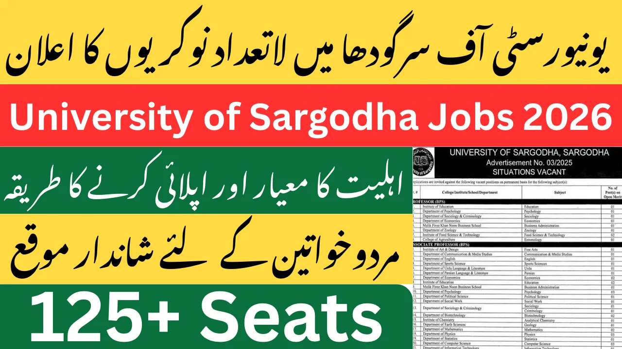 The University of Sargodha Jobs 2026 are out right now with a bunch of permanent teaching jobs (Advertisement No. 03/2025). If you’re into teaching or have a degree, this could be super cool for you. It’s a big chance to get a steady job in a uni!